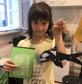 In diesen drei Tagen stellt ihr ein Motiv eurer Wahl (in unserem Beispiel: einen Fisch) in drei verschiedenen Techniken dar. Zwei davon sind abgebildet (Druck und Plakat/Collage), die dritte Technik ist noch geheim :) Mit Spaß und Spiel und Liebe zum Detail wird es ein künstlerisches Vergnügen.