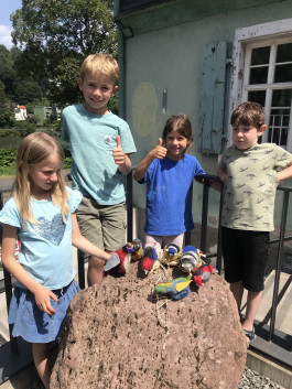 Bewegungsspiele, Spaß und Erholung sind Teil von unserem Programm, da wir nicht nur für Kunst begeistern, sondern auch gemeinsam die Ferien genießen wollen.